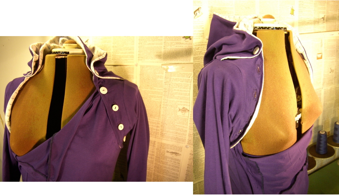The dark grey on the outside was actually easy to assemble since I had enough fabric to piece together. The dress/housecoat combo was xxl and in good condition. No tears or blemishes to work around...lucky me!